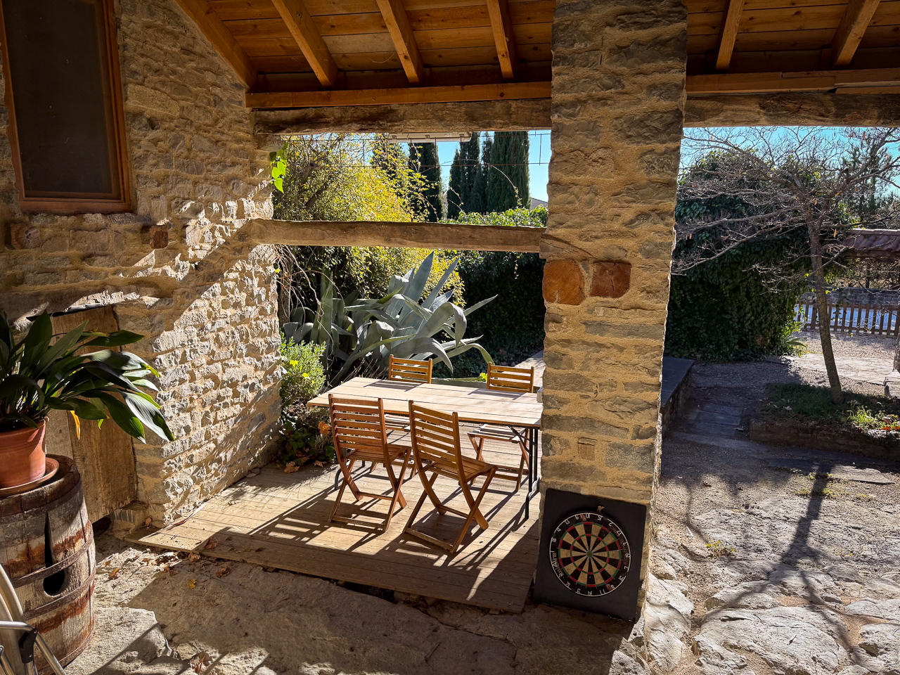 - ✈ Vliegtuig: vliegen op Barcelona of op Zaragoza, telkens gevolgd door een stevige (huur)autorit van resp. 3 en 2 uur. Er is ook een bus van Barcelona naar Barbastro (op 1 uur van Casa Mata).